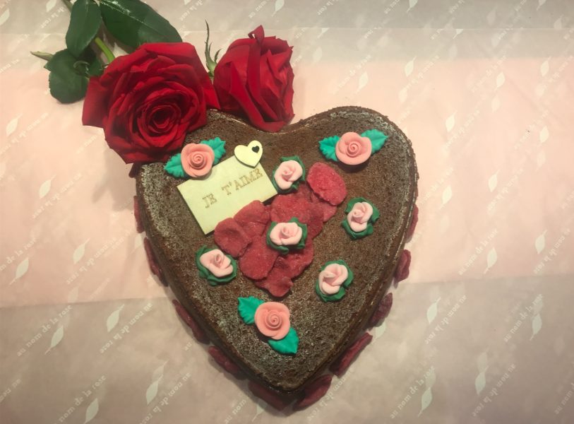 Comme elle aime aussi cuisiner et pâtisser, elle suggère pour la Saint Valentin ce gâteau moelleux en forme de cœur qui associe les saveurs de chocolat et de roses. Au fil des saisons, elle propose aussi en sa boutique de fleurs strasbourgeoise Ma plus belle histoire des douceurs à base de rose Centifolia et Tango réalisées par un confiseur situé dans le pays de Grasse. Pour cette Saint-Valentin qui coupe tellement les ailes aux restaurateurs, Caroline s’est associée à Isabelle Meyer de la Pâtisserie Christian rue Mercière et à Fanny Fuchs du Restaurant Il Girasole pour proposer des menus clef en main associant saveurs salées, sucrées et fleurs.