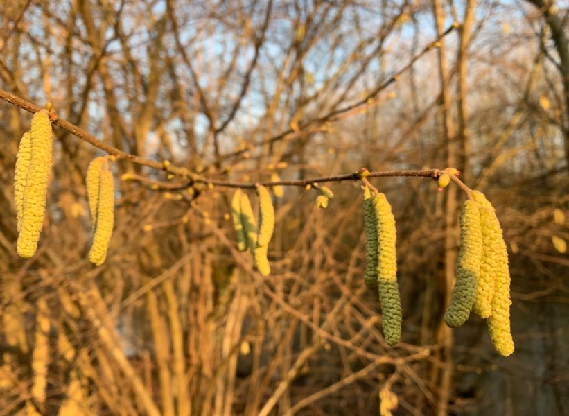 Sous le doux soleil de février, j’ai photographié le noisetier en fleurs.