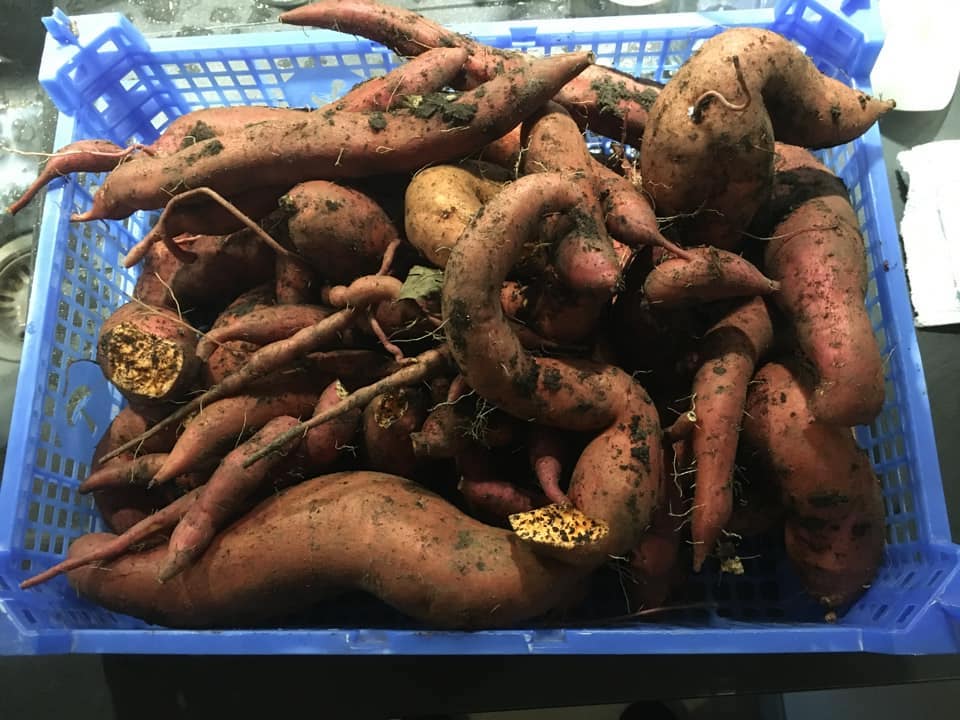 Ce tubercule n’est pas de la famille des solenacées dont fait partie la pomme de terre mais il appartient à la famille du liseron. La patate douce, cultivée dans les régions tropicales, s’épanouit aussi en terre d’Alsace. Il ne faut pas que le gel la touche, précise Jean-Michel. Je veille à la planter lorsque le risque du froid printanier est passé. Une fois récoltée, j’entrepose les patates douces dans une pièce tempérée pendant une semaine, ce qui épaissira leur peau et permettra une conservation plus longue.